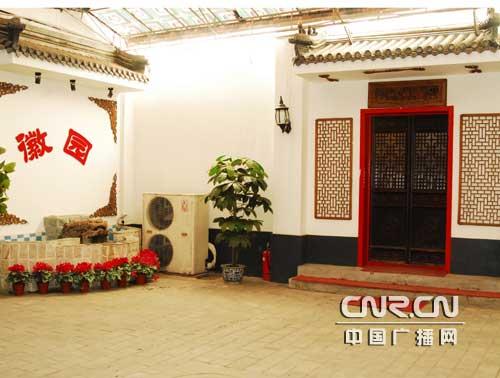 记者来到位于什刹海之畔不远的小石虎胡同,果然,装潢朴素大方的徽园食府很明显地令记者在胡同中发现。据说这里原是一个废弃的工厂厂房,如今的徽园已将这里改造成了一个文化气息十足的餐饮文化于一体的综合性食府了。